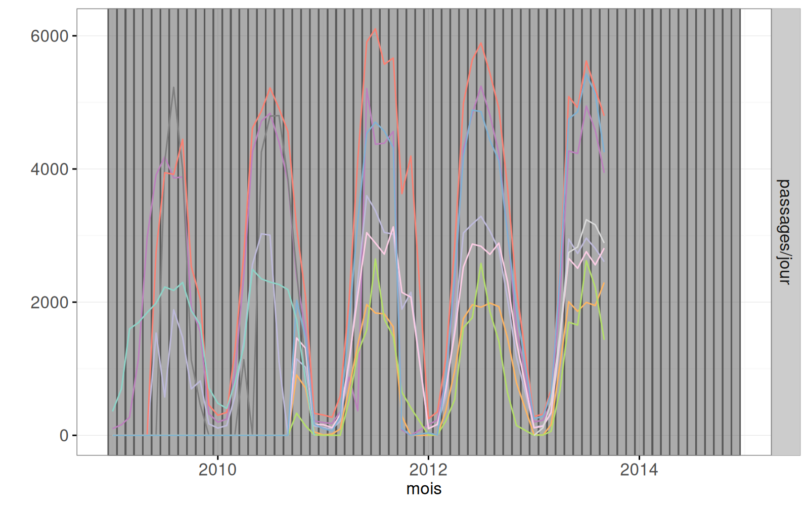 jour.du.mois, passages, group=lieu,